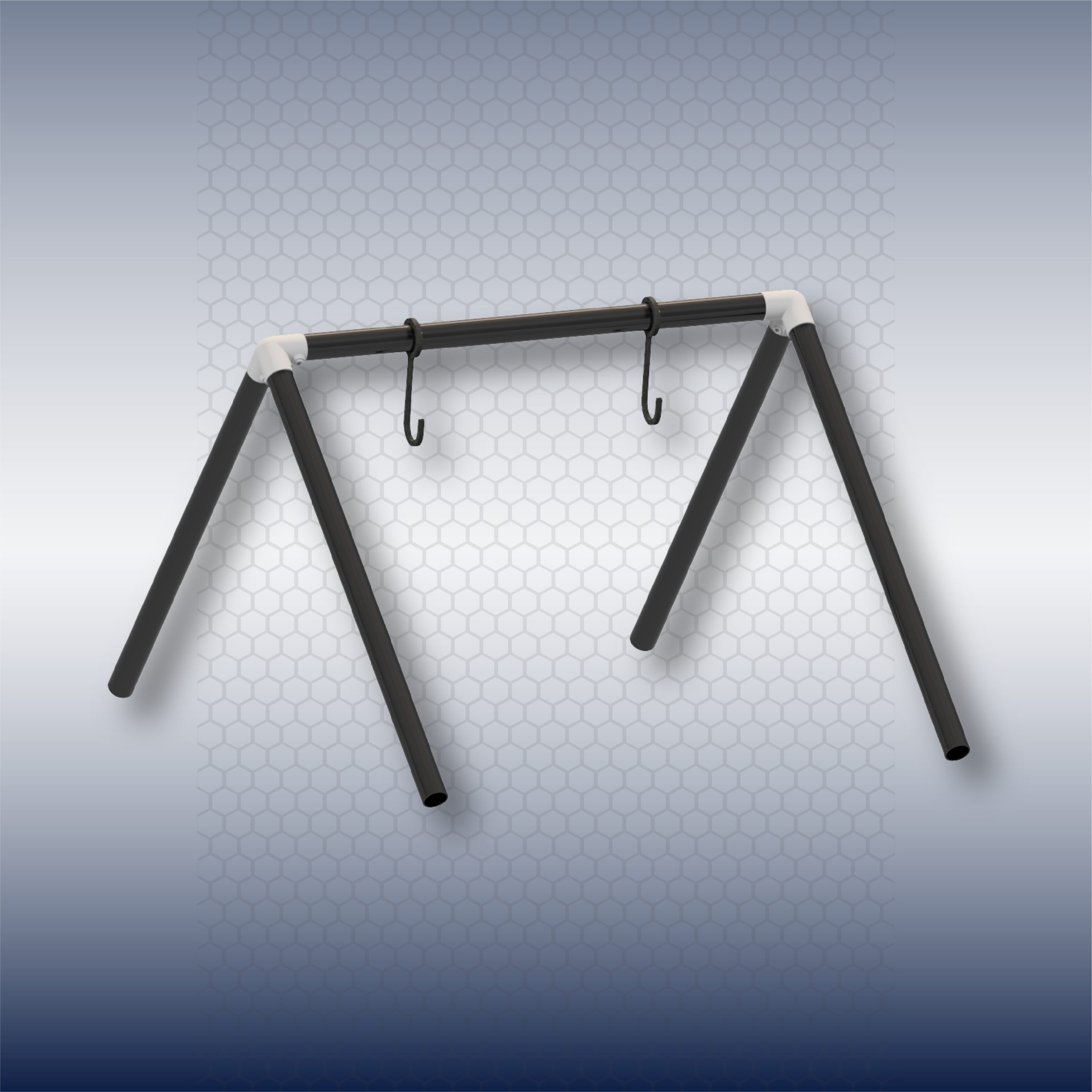 Galvanized A-Frame stand with hooks, measuring 36″ x 36″.